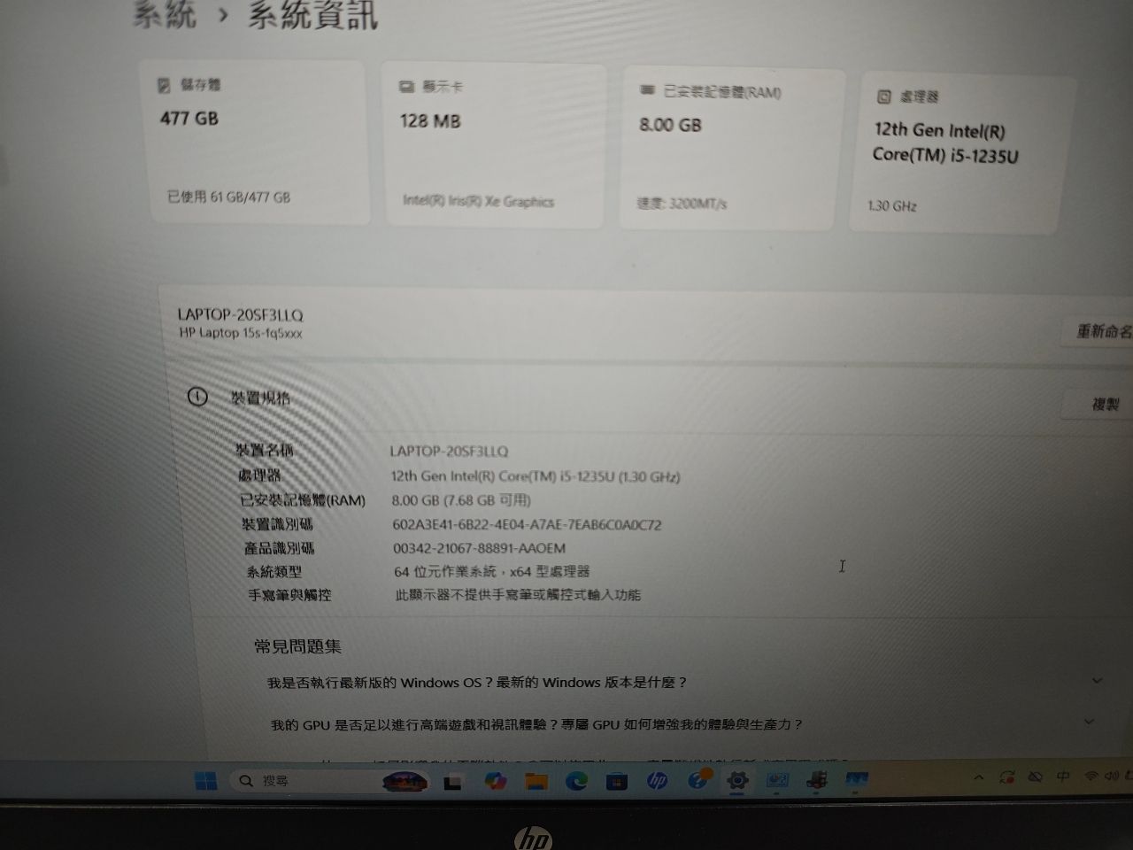 [賣/中壢 ] HP 15吋文書機(I5-1235U/8G/512)