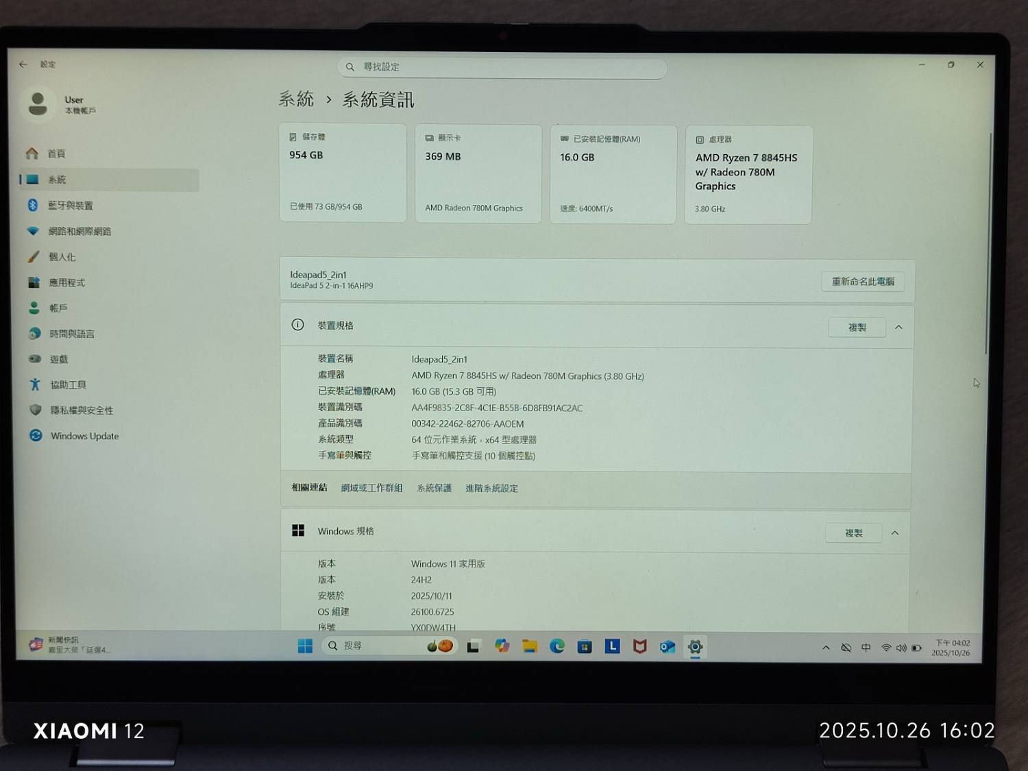 ◎筆電型號: Lenovo Ideapad5 2in1 16AHP9