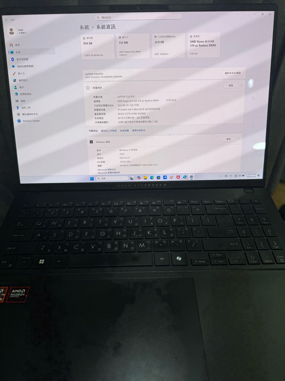 ◎筆電型號: ASUS vivobook s16 M5606WA
