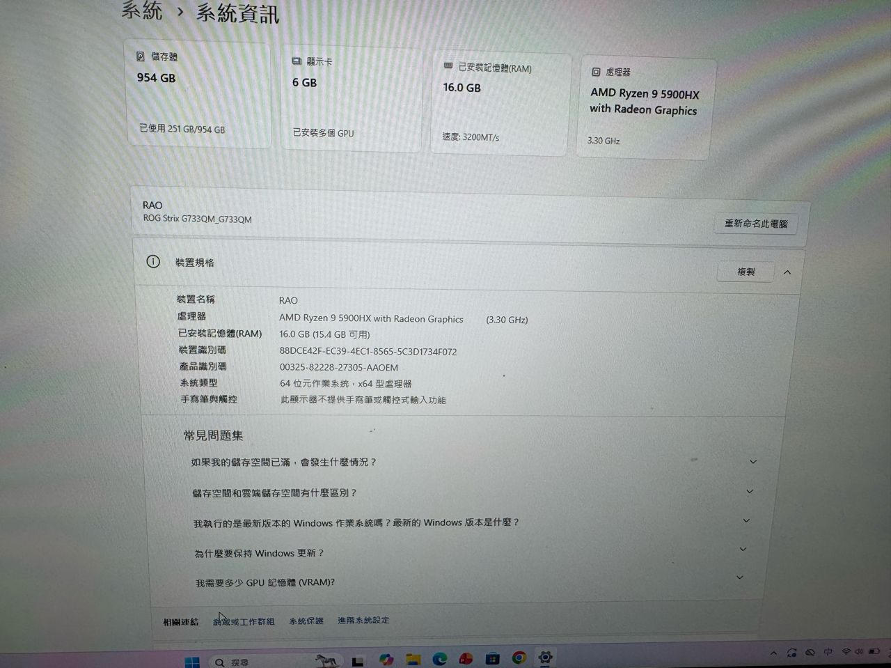 ◎筆電型號: ROG Strix SCAR 17 G733QM