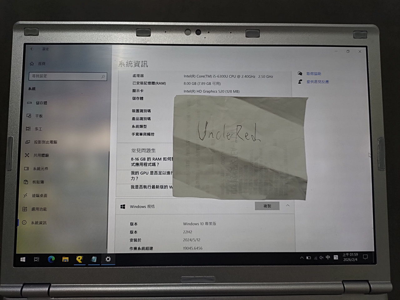 ◎筆電型號: PANASONIC CF-SZ5