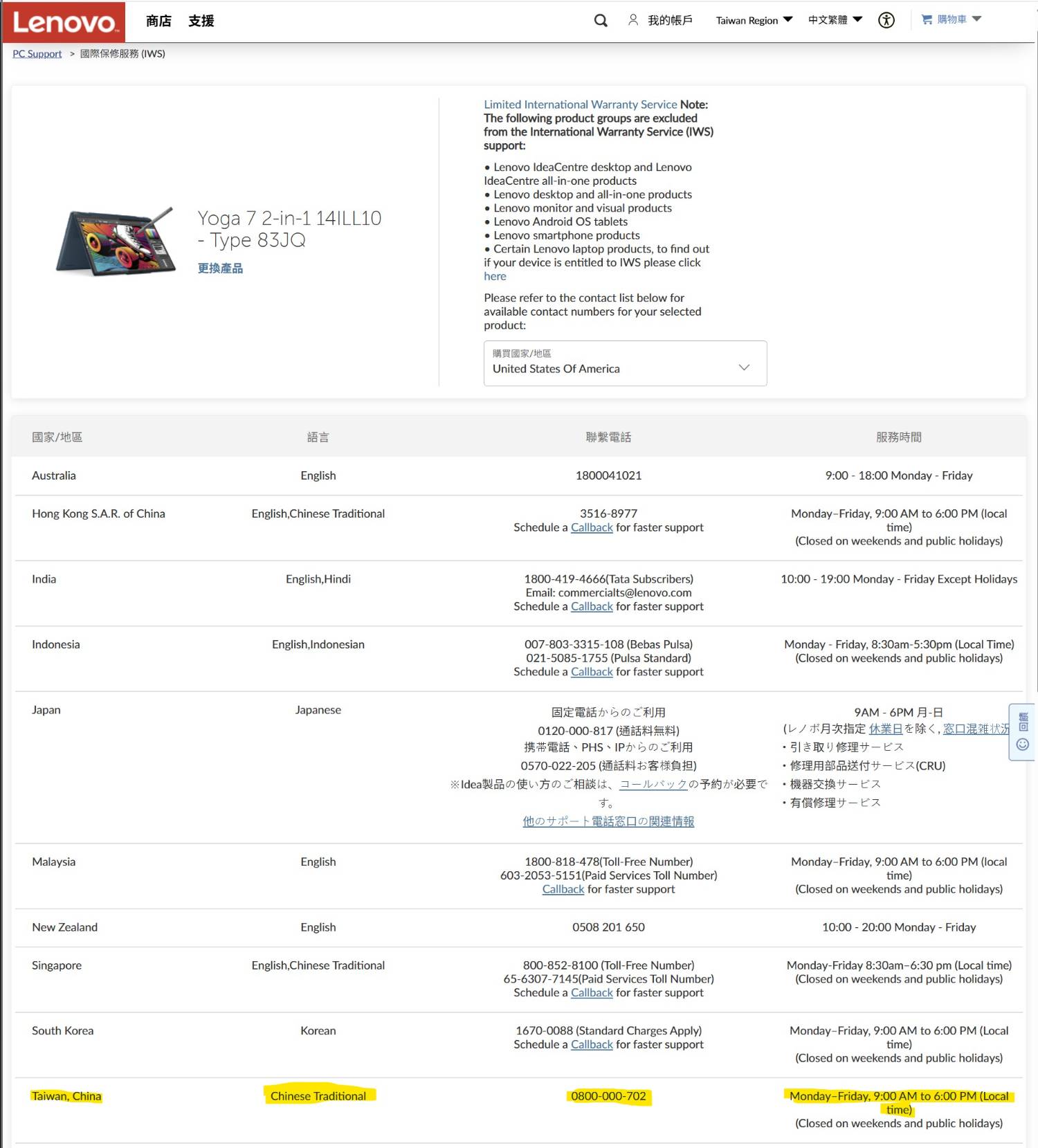 IWS國際保固涵蓋區域查詢: