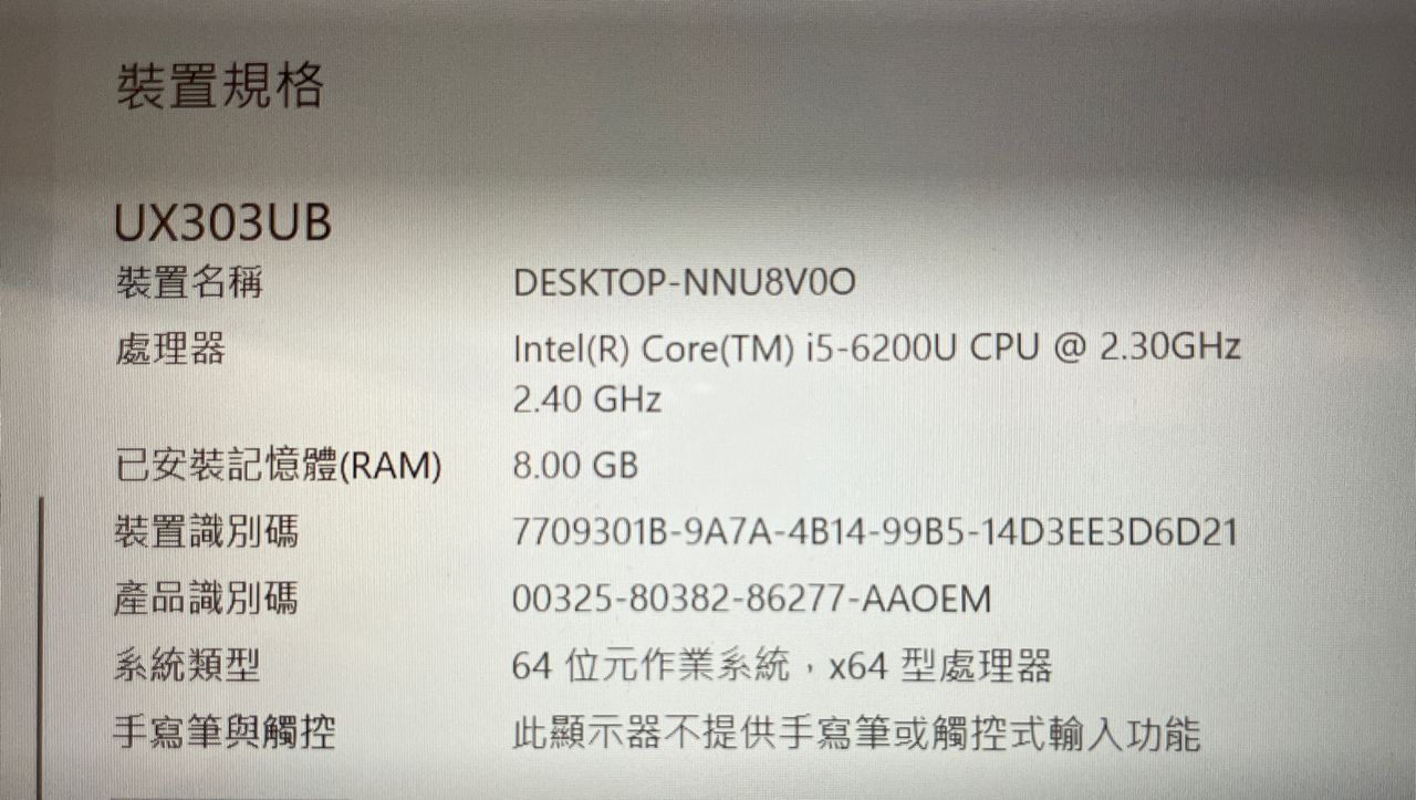 ◎筆電型號: ASUS ZenBook UX303U