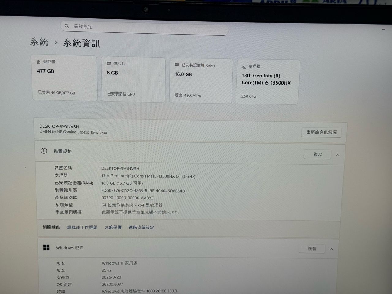 ◎筆電型號: HP OMEN-16 755F8AV