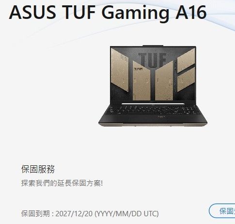 ◎筆電型號: ASUS 華碩TUF Gaming A16 FA617NT-0022C7735HS 暴風沙(R7-7735HS/16G/5
