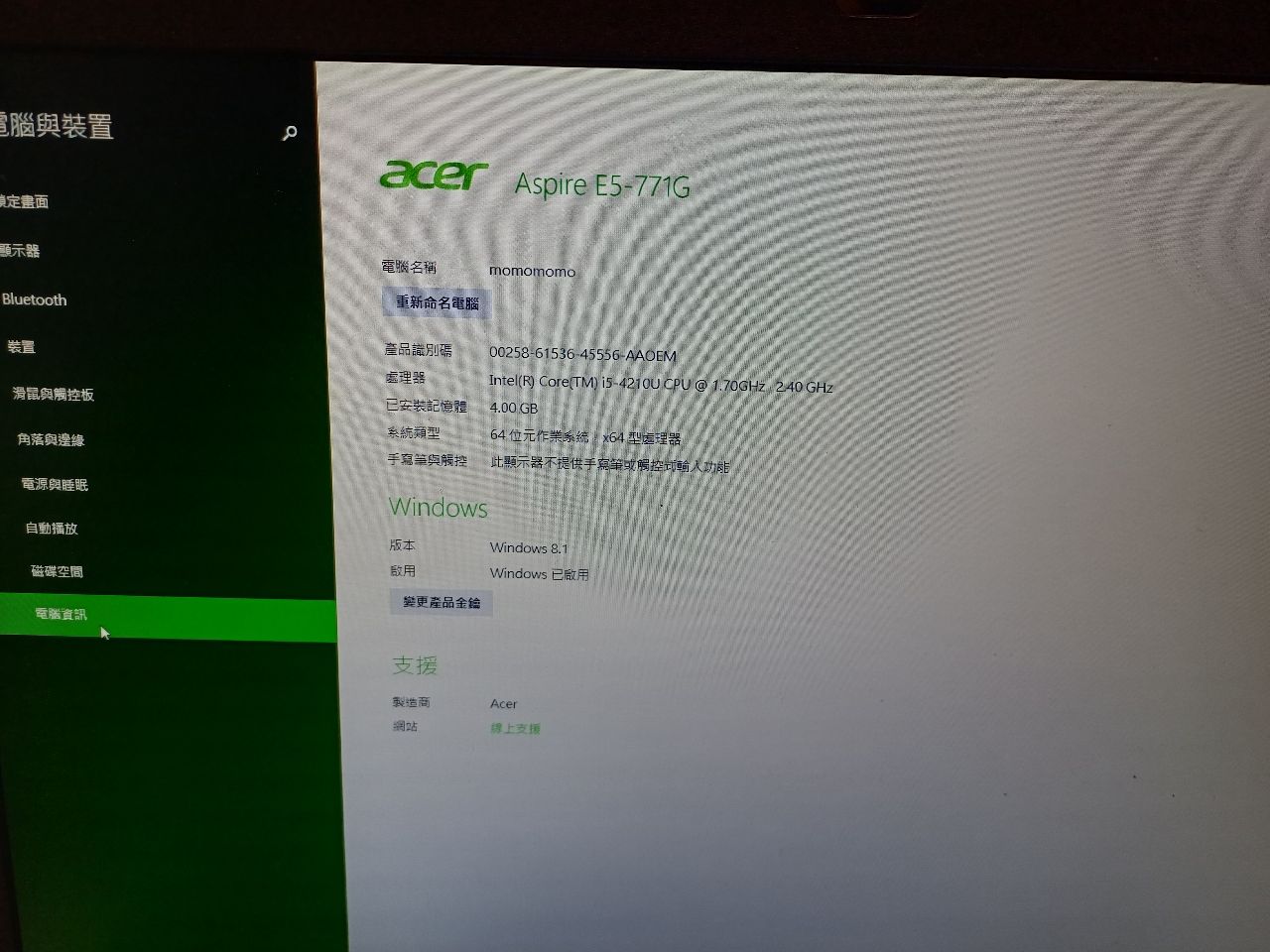 ◎筆電型號:acer E5-711g