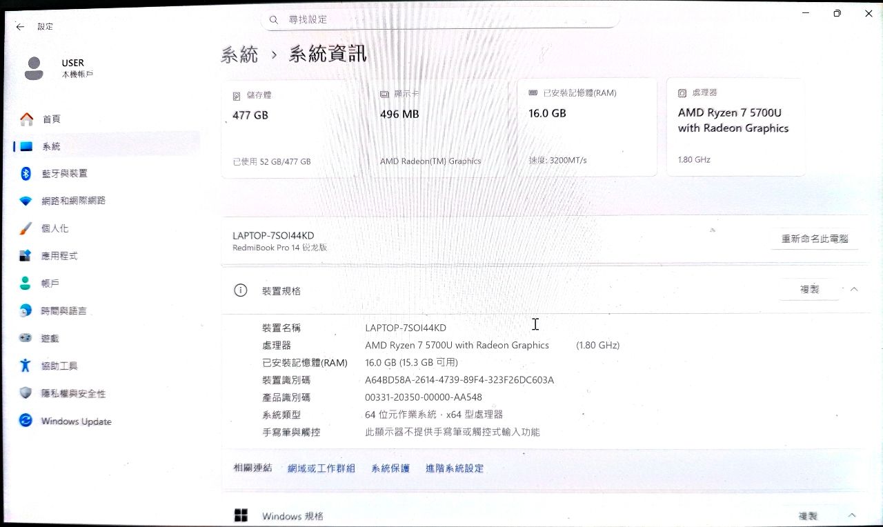 ◎筆電型號: Redmibook Pro 14 銳龍版