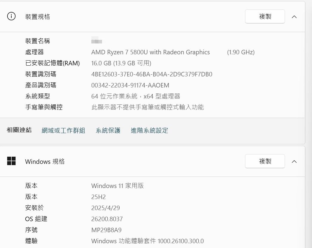 處理器□□ AMD Ryzen 7 5800U with Radeon Graphics