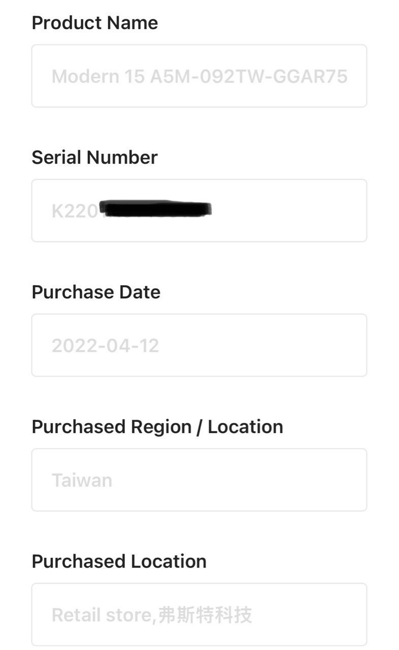 ◎筆電型號: MSI modern15 A5M